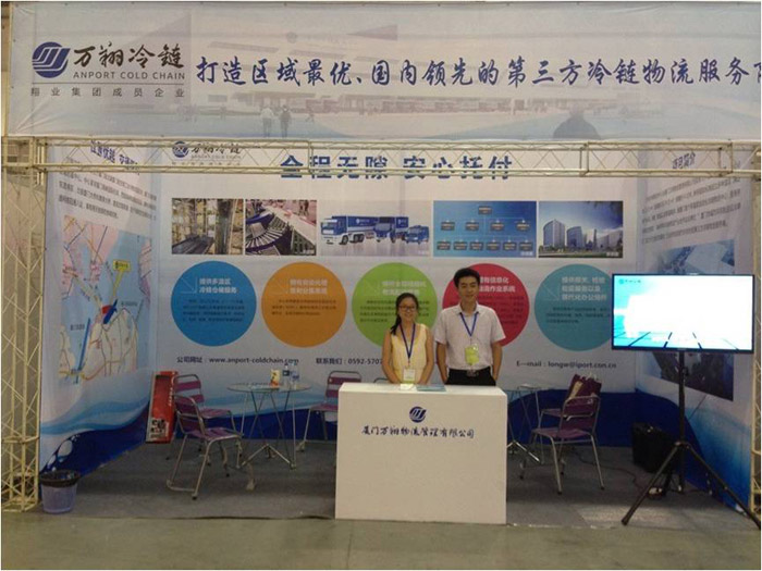 一年一度的海峡渔业博览会在福州拉开了序幕。第八届渔博会的展示面积共46000平方米,展品达1600多种,涉及水产养殖、海洋捕捞、水产加工、休闲渔业和渔具、渔需设备等产业,国内、国际展商数量达600余家。万翔冷链借此契机,本着“探讨合作、互利共赢”的理念,万翔冷链带着自己的品牌、产品、团队走出厦门来到了福州。