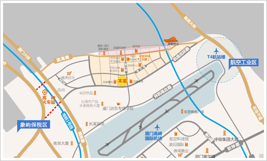 园区总规划面积约为1.2平方公里,地处厦门岛北端。位于空港、海港、公路、铁路立体交通运输方式的结点上。